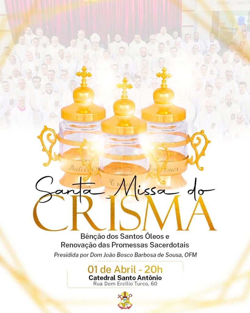 A Santa Missa será presidida por Dom João Bosco Barbosa de Sousa, ofm, e concelebrada pelo clero diocesano.