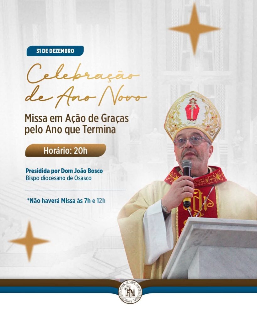 Participe da Missa de Ação de Graças, às 20h, presidida por Dom João Bosco.