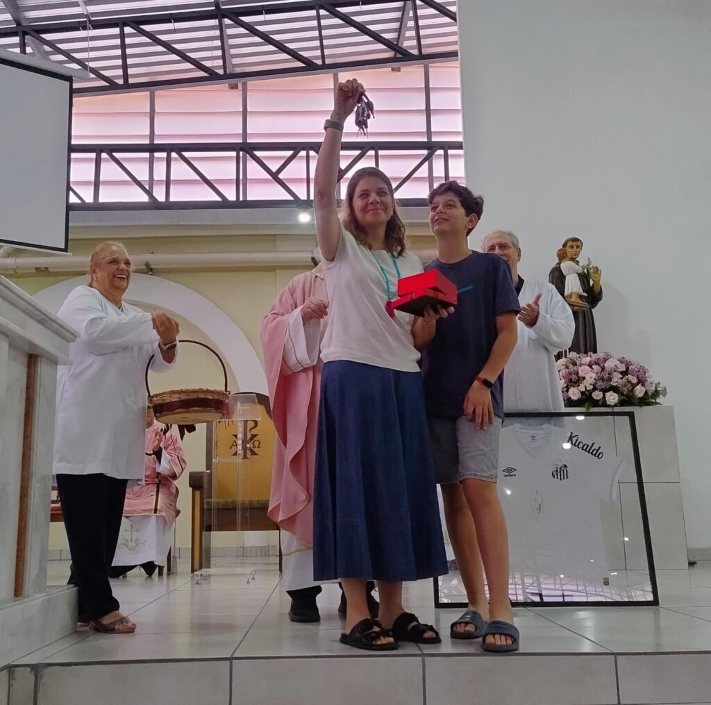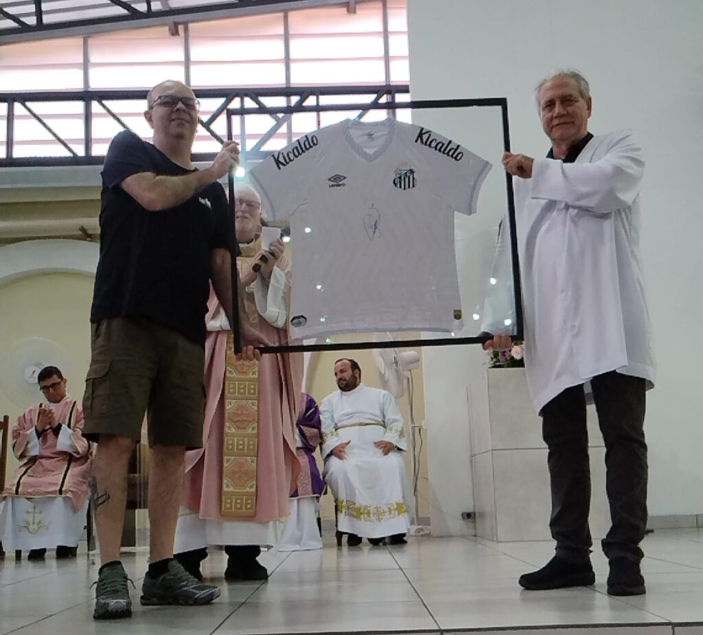 Mais uma etapa de arrecadação para a obra concluída! Na manhã deste domingo (14) Monsenhor Claudemir entregou os prêmios aos ganhadores da “Ação entre Amigos” que teve início no mês de setembro, na qual os prêmios eram: uma camisa do Santos F.C. autografada pelo craque Neymar Junior, uma Scooter elétrica e um Smartphone.