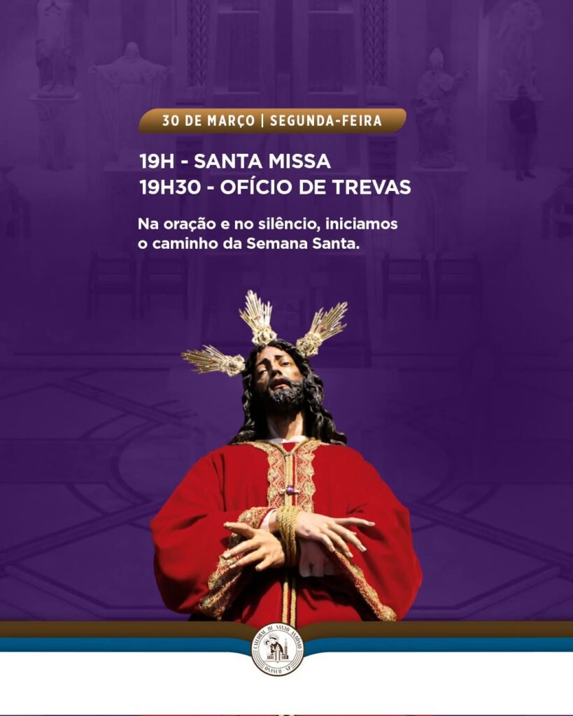 Santa Missa nesta segunda-feira às 19h e Ofício de Trevas às 19h30 na Catedral de Santo Antônio…