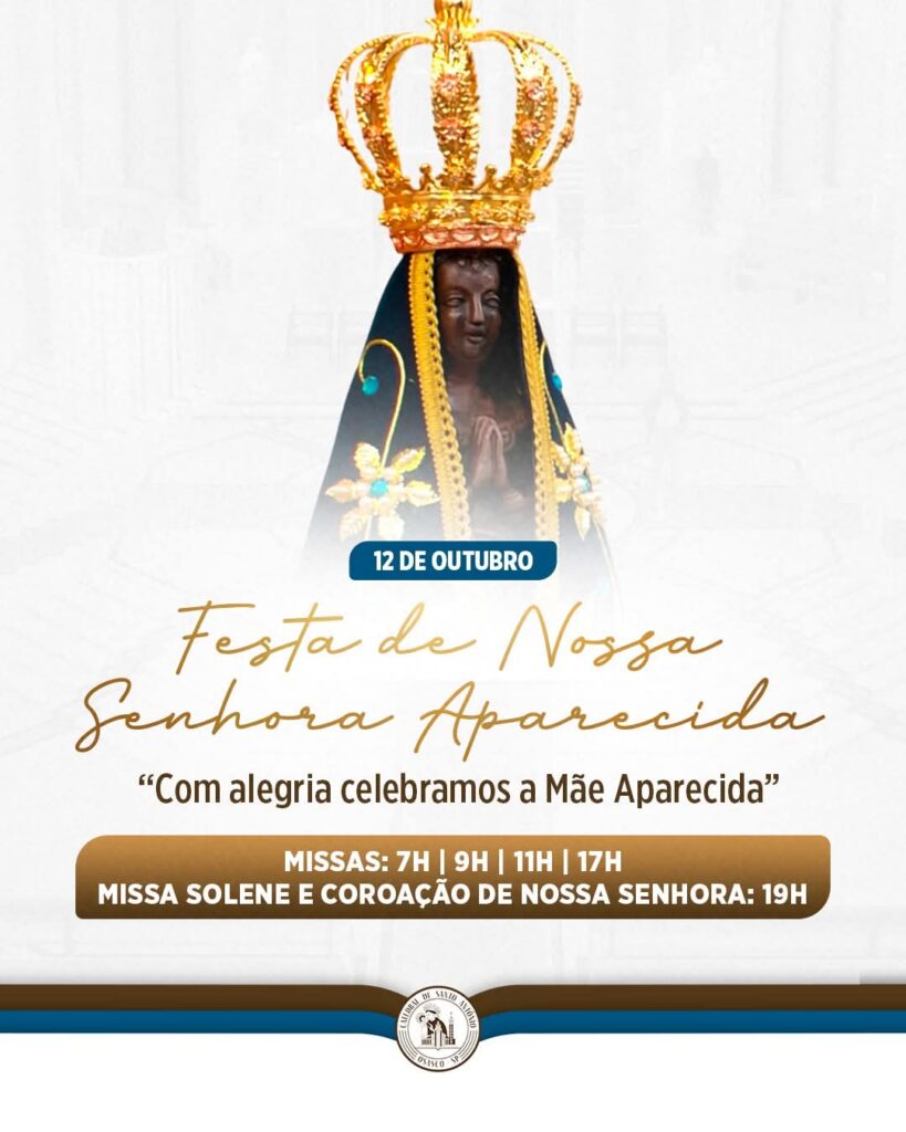 Participe da Solenidade de Nossa Senhora Aparecida, Rainha e Padroeira do Brasil na Catedral de Santo Antônio. Confira os horários da Santa Missa: