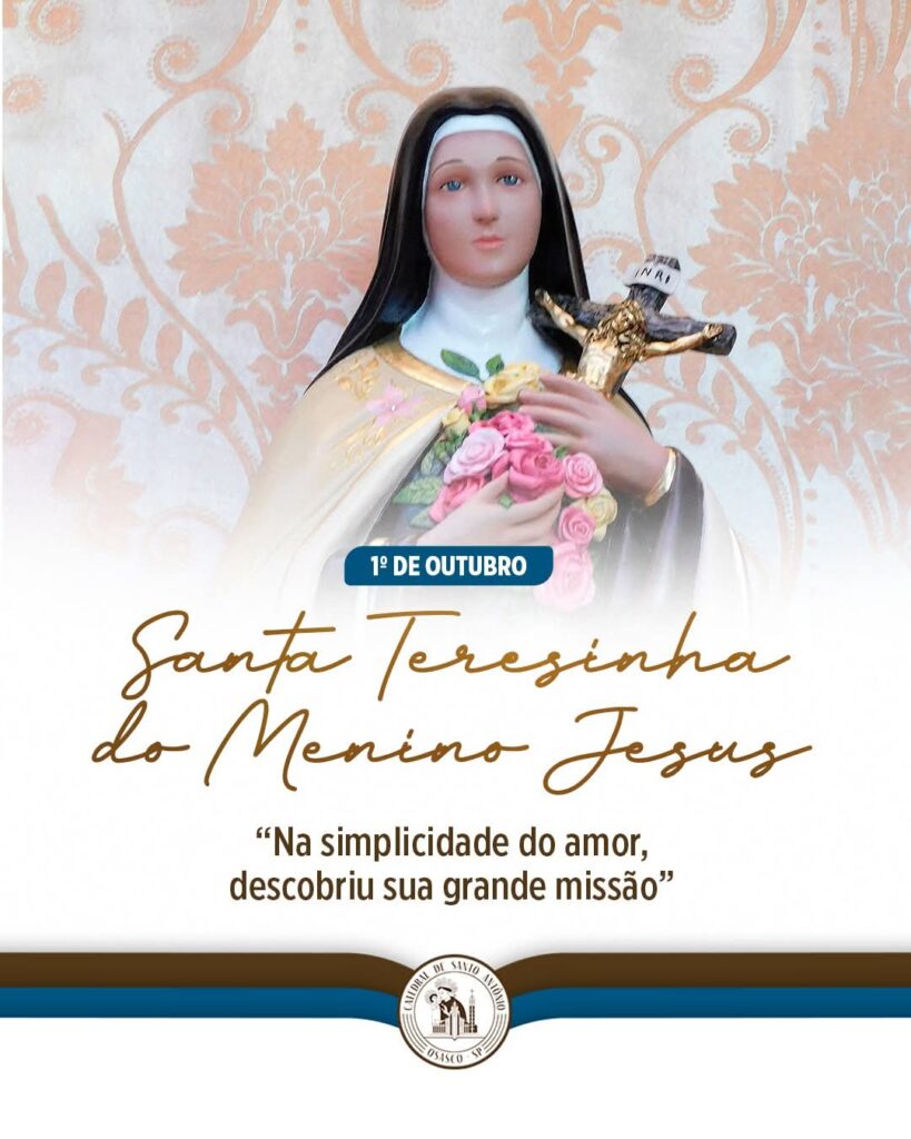 Com sua vida simples e cheia de amor, Santa Teresinha nos ensina que a verdadeira missão nasce de um coração que se doa inteiramente a Deus. Que sua intercessão nos inspire a viver o Mês Missionário com fé, esperança e generosidade, sendo sinais do Evangelho no dia a dia.