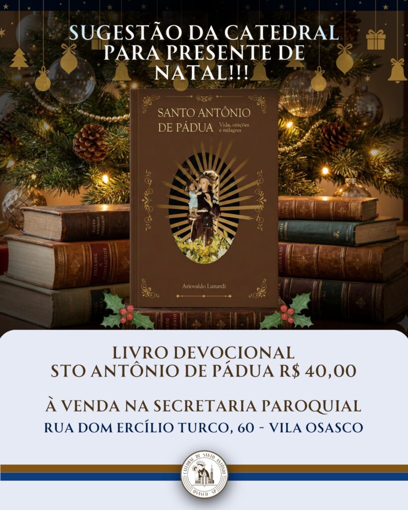 Adquira o seu exemplar na Secretaria Paroquial da Catedral de Santo Antônio e presenteie quem você ama com uma leitura que ilumina a alma.