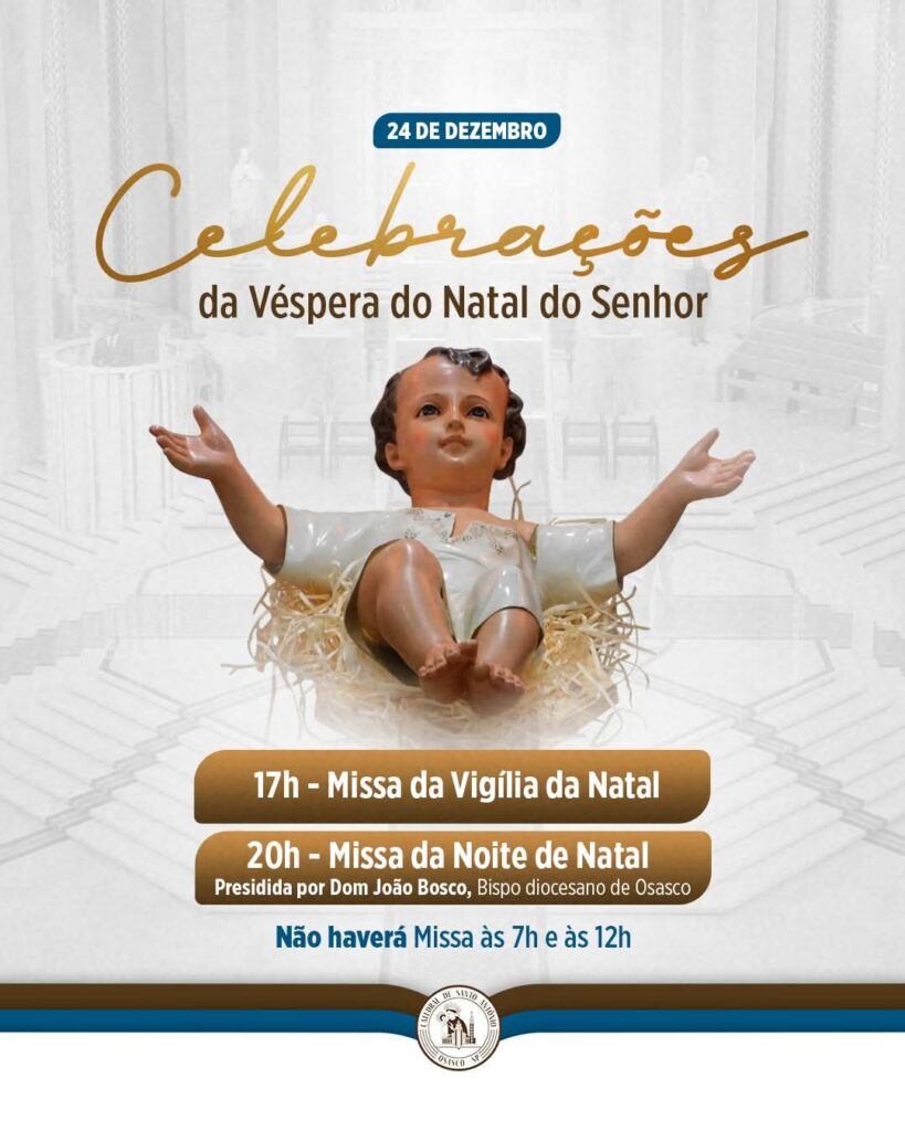 Você e sua família são nossos convidados especiais para celebrar conosco as Missas de Natal e Ano Novo! Vivamos juntos a alegria do nascimento de Cristo e o início de um novo tempo de fé e comunhão. Confira os horários em nossas redes e venha celebrar com o coração agradecido e cheio de esperança.24 de […]